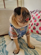 小さめのパグちゃんはSサイズがおススメ(丈25cm前後、体重5kg前後)