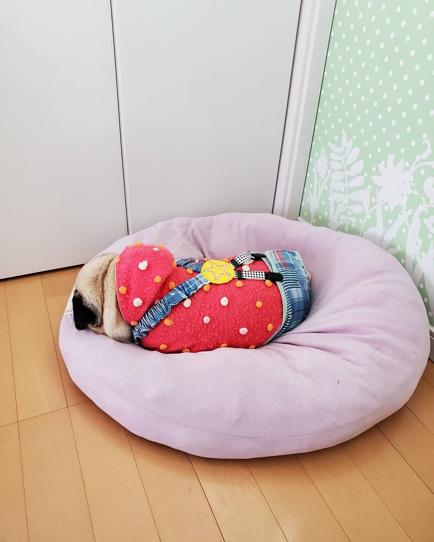 小さめのパグちゃんはSサイズがおススメ(丈25cm前後、体重5kg前後)